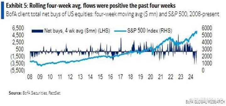 此次撤资发生在市场面临不确定性之际,今年推动标普500指数上涨18%的风险偏好情绪还能持续多久,仍是一个悬而未决的问题。这与前两周客户积极买入的趋势形成了对比。就在前一周,美国银行的客户投入了27亿美元购买美国股票,推动标普500指数录得今年最佳单周表现。